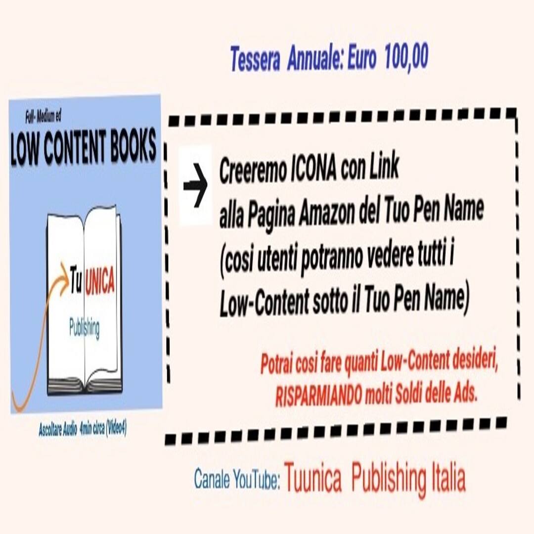 Verra' creata Icona (oppure 2-3 Icone) Low Content con Elenco di 12 Pen Name a seconda di quanti che creano appunto Low Content. Ogni Pen name potra' inserire max 4 Low Content